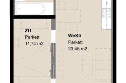 Die Wohnfläche beträgt ca. 46m² und teilt sich wie folgt auf: