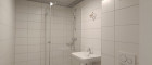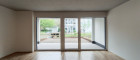 Diese moderne Gartenwohnung eignet sich ideal für Einzelpersonen oder Paare. Der helle Wohnraum überzeugt durch eine großzügige Fensterfront mit Schiebetür und bietet einen direkten Zugang zur überdachten Terrasse sowie zum privaten Gartenbereich.
