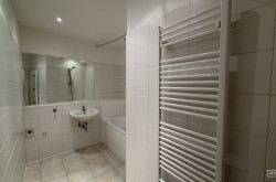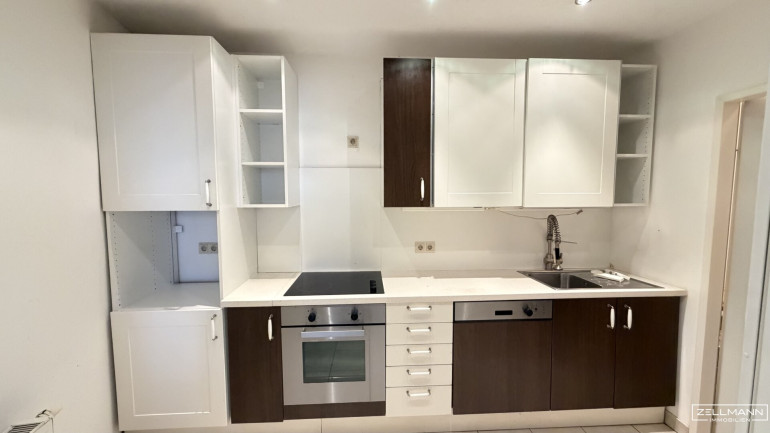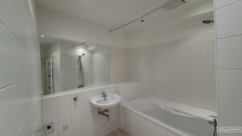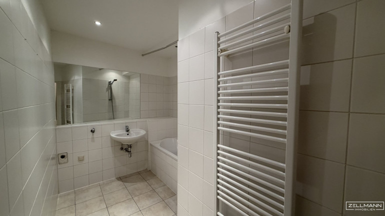 Die Küche ist separat angelegt, großzügig dimensioniert und voll ausgestattet. Das Badezimmer verfügt über eine Badewanne sowie einen Waschmaschinenanschluss, das WC ist getrennt – ein Detail, das den Wohnkomfort im Alltag spürbar erhöht.