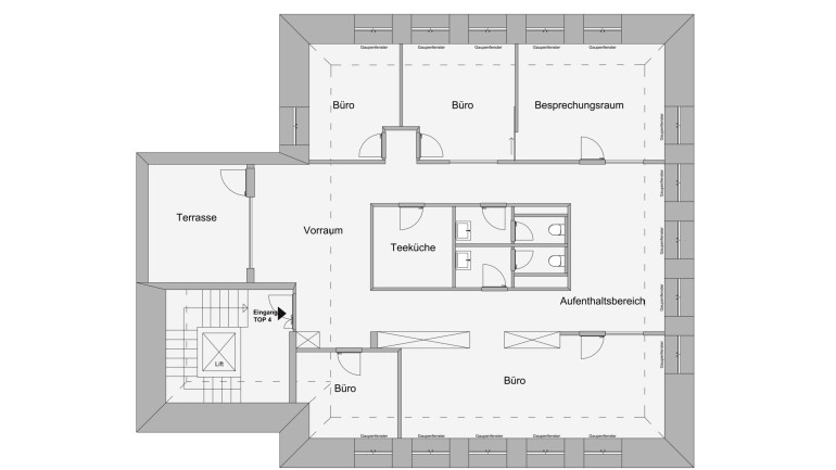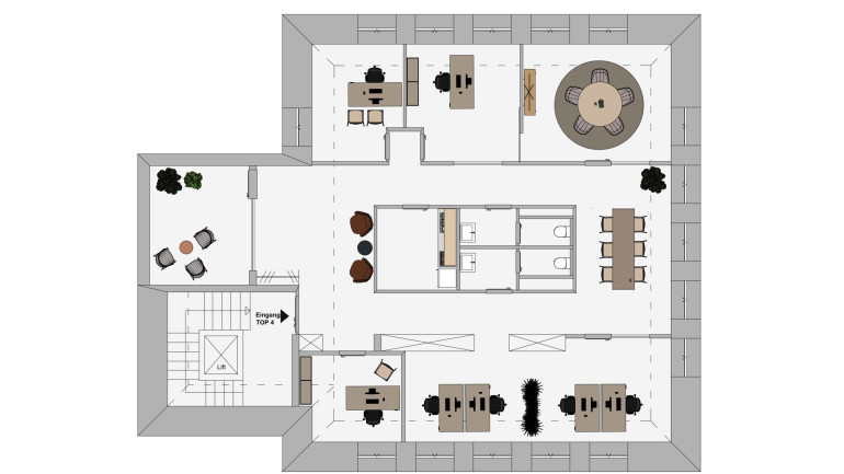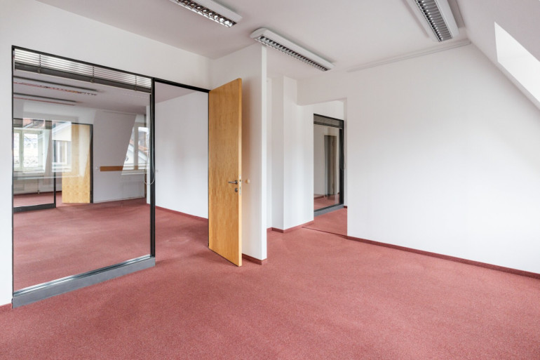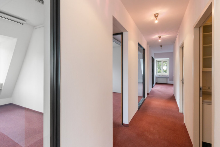 Das Büro umfasst insgesamt 6 helle und gut geschnittene Räume, die sowohl für die Einzelnutzung als auch als Gemeinschaftsbüro flexibel genutzt werden können. Die große Terrasse bietet zusätzlichen Raum für Pausen, Meetings im Freien oder entspannte Stunden.