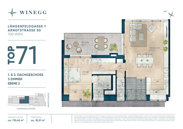 Ein besonderes Augenmerk wurde auf Freiflächen gelegt: Alle Wohnungen verfügen über Loggien, Balkone, Terrassen oder Eigengärten, die den Wohnraum ins Freie erweitern. Die beiden Dachgeschoßwohnungen setzen dem Projekt die Krone auf und bieten großzügige private Dachterrassen mit besonderem Wohnkomfort – ideal für anspruchsvolle Käufer, die das Besondere suchen.