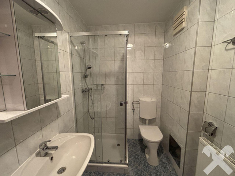 - Badezimmer mit Dusche, WC und Waschmaschinenanschluss