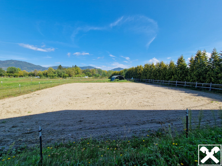 Darüber hinaus verfügt die Liegenschaft über ein Stallgebäude mit fünf Pferdeboxen, eine Pferdeunterstellhütte, eine Scheune sowie einen gemütlichen Grillplatz (Grillkota) mit herrlichem Weitblick. Ein Schuppen mit angrenzendem Sitzplatz, eine großzügige Reithalle mit weitläufigem Reitaußengelände sowie ein Round-Pen vervollständigen die Anlage.