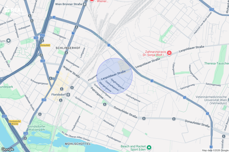 Die Lage besticht durch eine ausgezeichnete Infrastruktur und hervorragende Verkehrsanbindung. Der Bahnhof Floridsdorf ist in kurzer Distanz erreichbar und bietet Anschluss an: