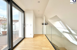 Diese perfekt aufgeteilte 2,5-Dachgeschosswohnung mit 87m² Wohnfläche mit 7m² Innenhofbalkon auf Wohnebene und 33m² Dachterrasse befindet sich im letzten Liftstock.