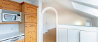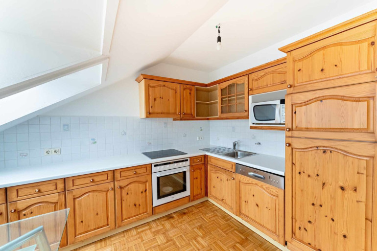 Die Küche ist funktional, jedoch bereits etwas in die Jahre gekommen. Je nach persönlichem Geschmack bietet sie Potenzial für eine Erneuerung; einzelne Geräte wurden bereits erneuert, andere stammen aus früheren Jahren.