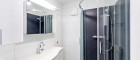 Das Badezimmer wurde vor einigen Jahren renoviert und befindet sich in einem sehr gepflegten, zeitlosen Zustand. Die Toilette ist separat und ordentlich ausgeführt.