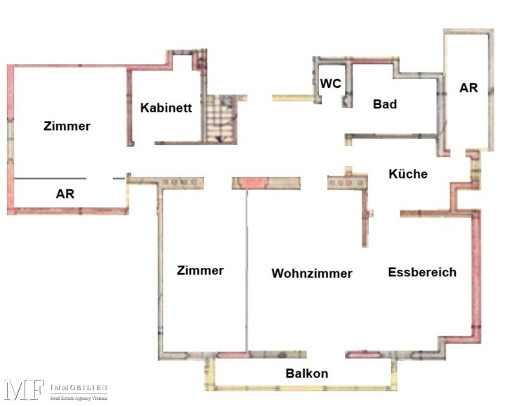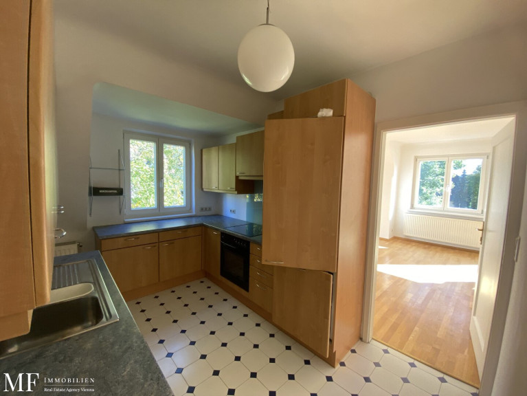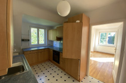 Sie verfügt über 3,5 Zimmer (großzügiges Wohn- Esszimmer mit 30 m², zwei Schlafzimmern und ein Kabinett) sowie einer schönen Einbauküche, einer Garderobe/Abstellraum, einem Badezimmer mit Wanne und Dusche sowie separater Toilette.