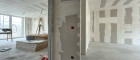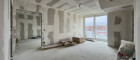 - Badezimmer – Wände mit KNAUF verkleidet; Boden- und Wandbeläge aus hochwertigem italienischem Feinsteinzeug; Ausstattung aus hochwertiger Keramik – Arbeitsplatte mit gegossenem Waschbecken, Unterschrank mit Schublade, abgetrennter Duschbereich mit Trennwand, montierte Armaturen und Duschmischer hoher Qualität, Spiegelschrank und Monoblock-WC