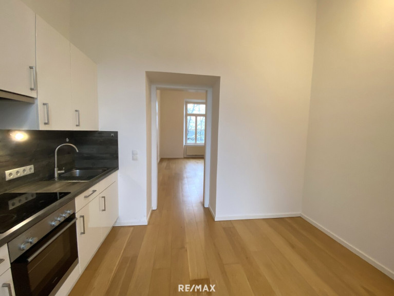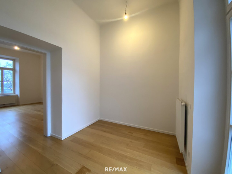 Hier befindet sich als einziges Objekt die zum Verkauf stehende Wohnung. Über die ebenfalls sehr imposante Eingangstür gelangen Sie in die Wohnung. Hier umfängt Sie ein Raumgefühl, das kaum eine andere Kleinwohnung zu bieten im Stande ist.
