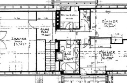 Die Wohnung ist zweigeschoßig und besteht im Untergeschoß aus Vorraum, großzügigem Wohnraum (ca 73m²) mit offenem Kamin und Süd-Balkon, Speisezimmer, Komplettküche mit kleinem Essplatz, Schlafzimmer mit kleinem Duschbad, Gäste-WC extra sowie Technik-/Abstellraum.