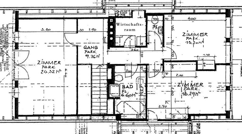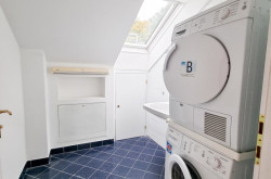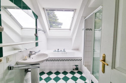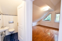 Darüber gibt es das Hauptschlafzimmer, zwei weitere Schlafzimmer sowie ein Bad mit Wanne, Dusche und WC, ein weiteres WC extra, Wirtschaftsraum.