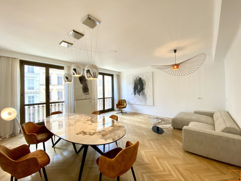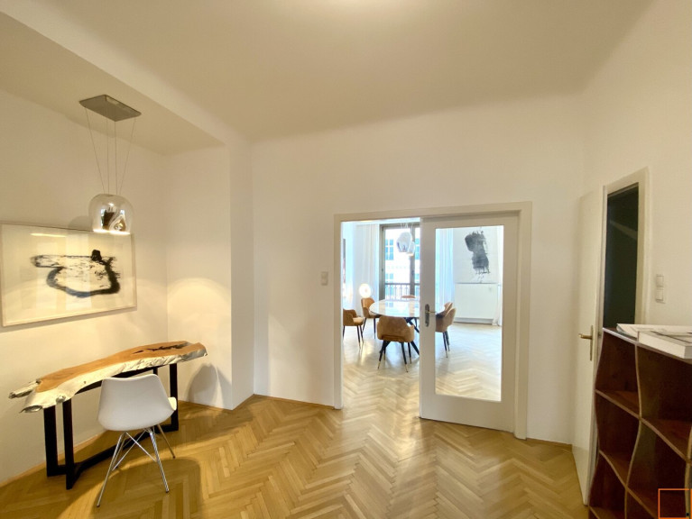 Zeitgeist und Stil zeichnen diese sehr schick möblierte und lichtdurchflutete Wohnung in sensationeller Lage aus.