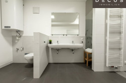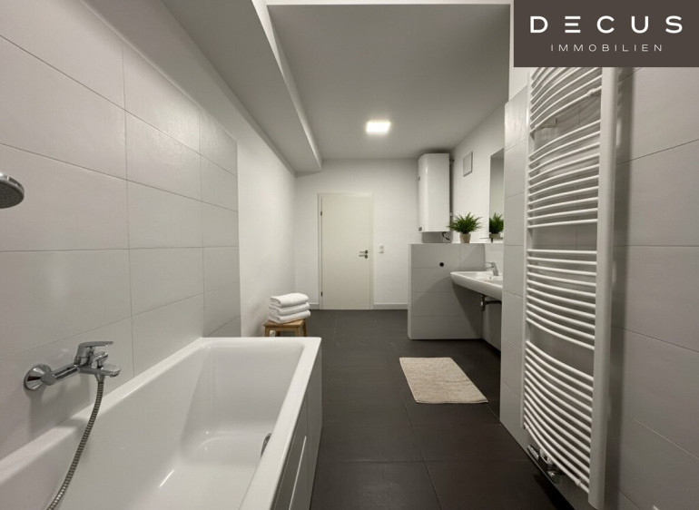 - Großzügiges Bad mit WC, Doppelwaschbecken, Dusche und Badewanne