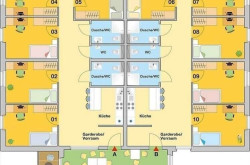 Jede Wohneinheit umfasst 5 Zimmer, insgesamt befinden sich 10 Zimmer pro Etage.