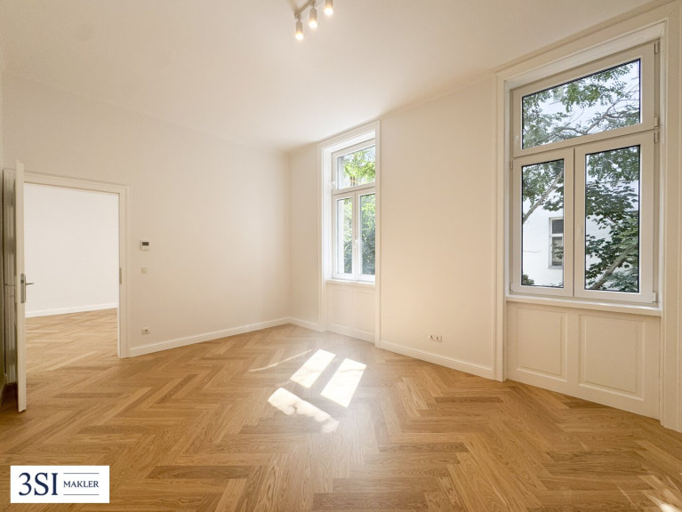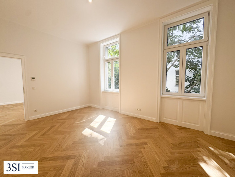 In der eben sanierten Stilaltbau-Wohnung lässt sich eine gediegene Ausstattung mit einer erlesenen Auswahl an Materialien genießen. Die Wohnung wurde mit aufwendig verlegtem Fischgrät-Eichenparkett und mit stilvollen Kassettentüren ausgestattet. Eleganter Deckenstuck und feine Vertäfelungen unterstreichen den einzigartigen Alt-Wien-Charakter. Traditionelle Holzkastenfenster, die durch moderne Isolierverglasung aufgewertet wurden zieren straßenseitig die Fassade. Das moderne Bad begeistert dank Markensanitärprodukten, einer Einbauwanne und einer Dusche mit erstklassiger Qualität, Komfort und Design.