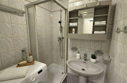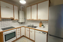 Eine vom Wohnbereich räumlich getrennte Küche, maßgefertigt von der Firma Dan, ausgestattet mit einem Gasherd und einem elektrischen Backrohr, lädt zum gemütlichen Kochen ein. Das Badezimmer, ausgestattet mit Dusche und Waschmaschine, sowie das WC, runden das Raumangebot ab.