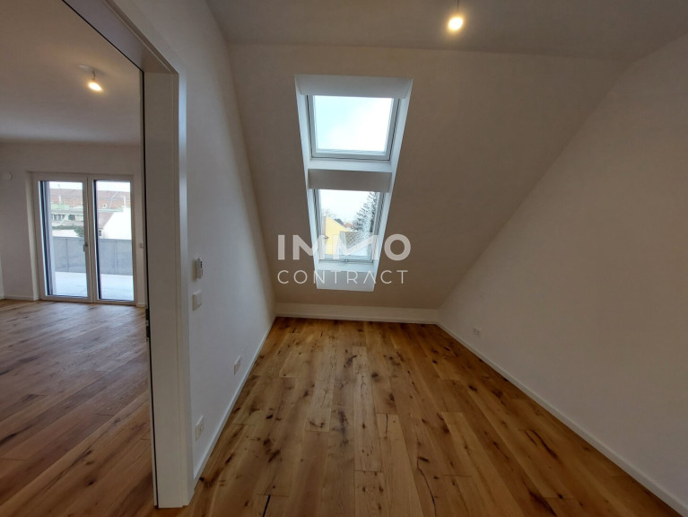Die Wohnungen verfügen über Wohnflächen von ca. 35 m² bis 69 m² und sind jeweils mit Eigengarten, Balkon oder Dachterrasse ausgestattet. Ein wesentliches Qualitätsmerkmal des Projekts sind die überdurchschnittlichen Raumhöhen, die im Erdgeschoss und im 1. Obergeschoss ca. 2,65 m und im Dachgeschoss ca. 2,80 m betragen. In Verbindung mit offenen Grundrissen entsteht dadurch ein besonders helles, großzügiges und hochwertiges Raumgefühl. Die Erschließung erfolgt zentral über ein Stiegenhaus und einen rollstuhlgerechten Personenaufzug. Die Tiefgarage ist bequem über einen Autolift erreichbar.