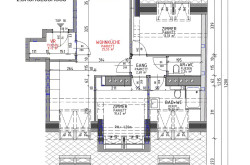 - Boden – Zementestrich mit Schalldämmung und Fußbodenheizung; Flur, Küchenbereich und Heizraum mit Thermokeramik; übrige Räume mit hochwertigem Parkett