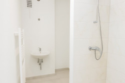Badezimmer mit Dusche und Waschmaschinenanschluss