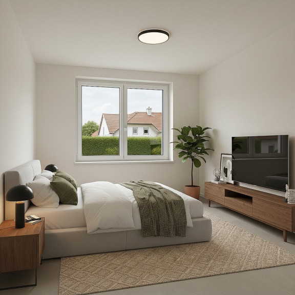 „Die dargestellten Möbel und Einrichtungsgegenstände dienen der besseren räumlichen Vorstellung und wurden mittels KI visualisiert. Sie sind nicht Bestandteil der tatsächlichen Ausstattung der Immobilie.“