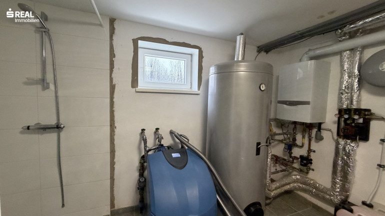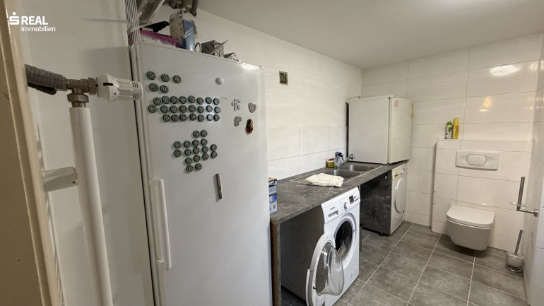 - Technikraum mit Waschmaschine und WC