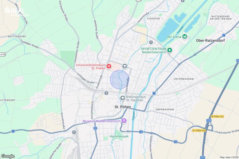 Die Lage dieser Wohnung zählt zu den gefragtesten Wohngegenden St. Pöltens: