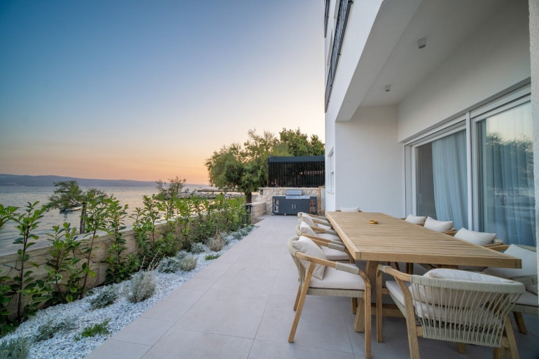 Diese 2024 neu errichtete Villa befindet sich in der ersten Reihe zum Meer und ist schon alleine deswegen sehenswert.