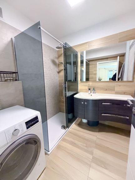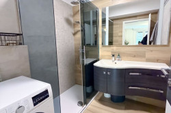 Badezimmer mit Dusche und Waschmaschinenanschluss
