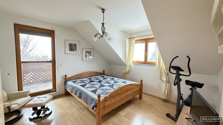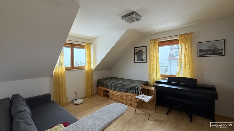 Im Dachgeschoss stehen mehrere gut dimensionierte Schlafzimmer zur Verfügung, die flexibel als Elternbereich, Kinderzimmer oder Homeoffice genutzt werden können. Die klassische Dachkonstruktion sorgt für eine angenehme Raumwirkung mit wohnlicher Atmosphäre.