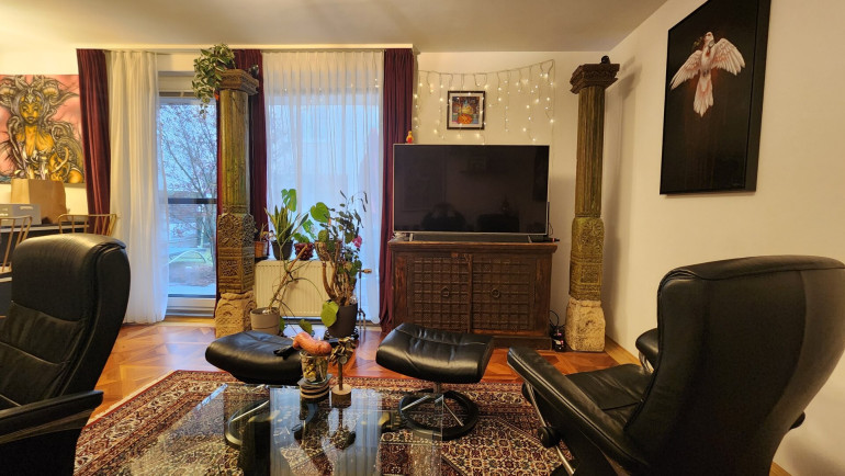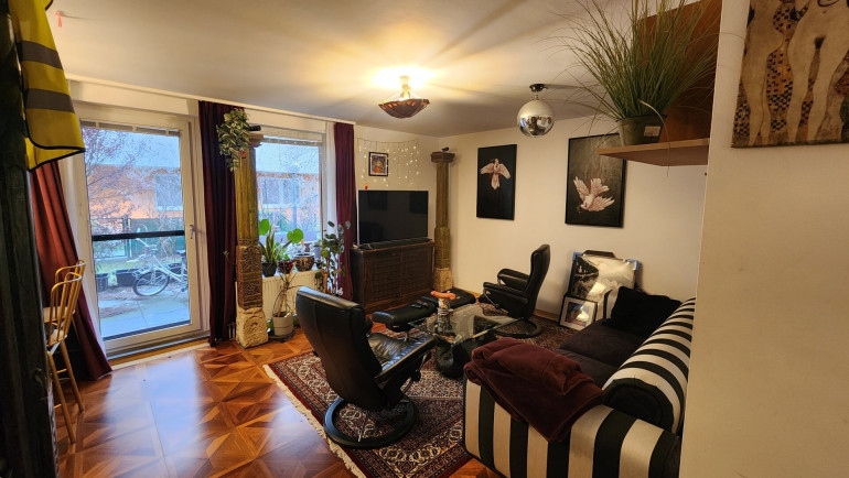 Die Wohnung befindet sich in Wien 20., Forsthausgasse 16, inmitten einer 1997 erbauten Wohnhausanlage. Die Wohnung liegt im Erdgeschoss und verfügt über drei Zimmer sowie eine südwestlich ausgerichtete Loggia mit herrlich grünem Eigengarten.