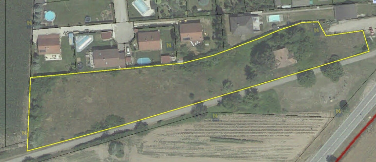 Der Zufahrtsweg zu den Grundstücken (gelb eingezeichnet) wird vom jetzigen Eigentümer angelegt.