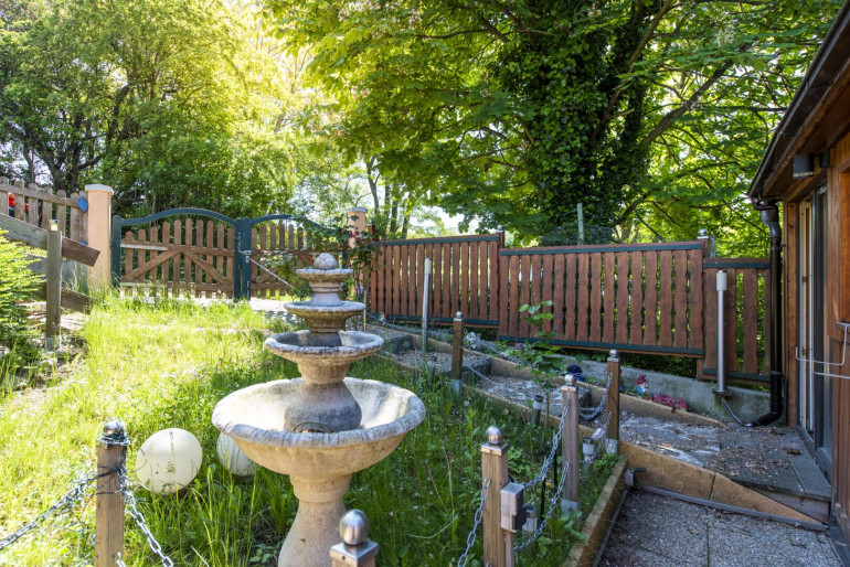Für die Erwärmung des Hauses sorgt ein Pelletsofen, der im Küchen- und Essbereich steht. In den Zimmern wurden teilweise Elektropaneele als Zusatzheizung montiert. Im oberen Gartenbereich befindet sich ein Gartenhaus und auch eines im unteren Gartenbereich. Der nach Westen ausgerichtete Balkon hat eine Größe von ca. 6,26 m², Die Terrasse hat eine Größe von ca. 34,25 m². Die Gartengröße beträgt ca. 550,00 m².