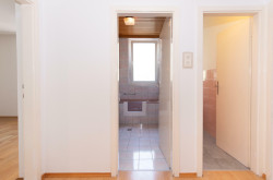 Das Badezimmer ist mit Wanne, Bidet, Waschbecken und einem Fenster ausgestattet, das WC ist separat begehbar. Ein geräumiger Vorraum sorgt für zusätzlichen Stauraum und schafft eine angenehme Wohnstruktur.