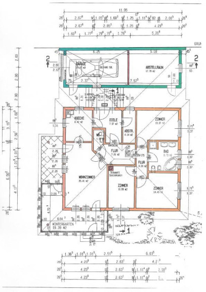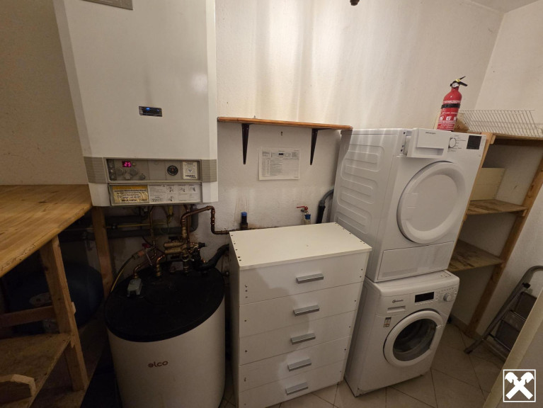 Gas, Fußbodenheizung, Heizofen, Kamin, Einbauküche, Bad mit Fenster, Badewanne, Dusche