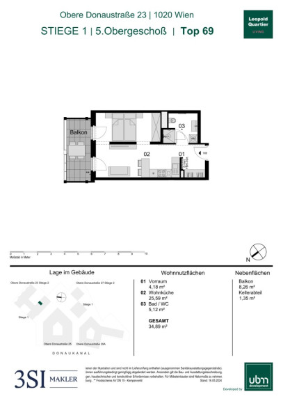 Diese moderne Wohnung befindet sich im 5. Obergeschoß. Die Einheit verfügt über eine Wohnnutzfläche von ca. 35 m² und bietet zusätzlich einen ca. 8 m² großen Balkon.
