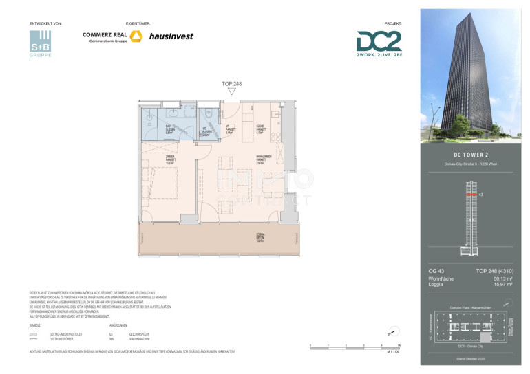 DC 2 Tower - Westside Skyline Living – Exklusive 2 Zimmer mit Panorama-Loggia über Wien