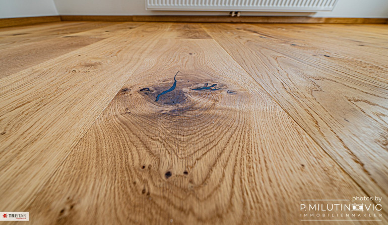 Hochwertiger Eichenparkettboden (rustikal) in Wohn- und Schlafräumen