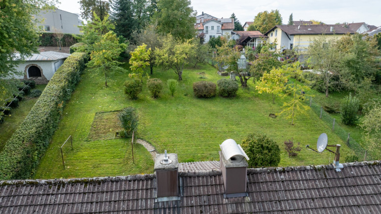 Im schön gestalteten Garten hat man einen Ausblick über ganz Aurolzmünster. Weiters besteht die Möglichkeit, das Grundstück im oberen Gartenbereich zu erschließen und einen weiteren Baukörper (Garage, 2-geschoßigen Wohnbau) zu errichten.