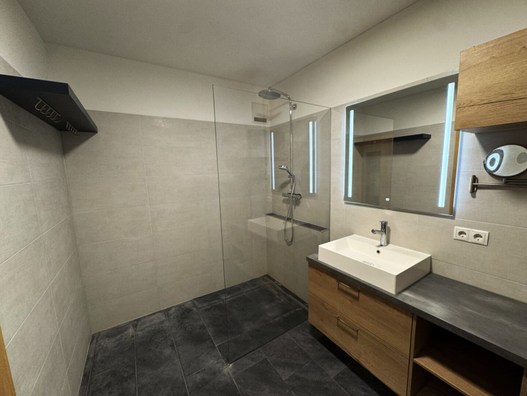 Eines der Highlights dieser Wohnung ist die besonders hochwertige Küche. Hier finden Sie zahlreiche Stauraummöglichkeiten sowie eine einladende Sitzgelegenheit, die gesellige Kochabende mit Familie und Freunden ermöglicht. Das Badezimmer stellt ebenfalls einen Höhepunkt des Objekts dar und wurde mit hochwertigem Inventar ausgestattet.
