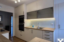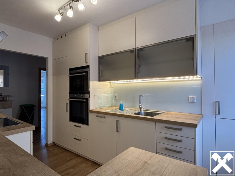 Zur Möblierung gehören eine Einbauküche, ein Vorzimmerverbau, ein Schlafzimmerschrank und ein Badezimmerschrank. Die Wohnung wird über eine Gastherme beheizt und verfügt über eine SAT‑Anlage.