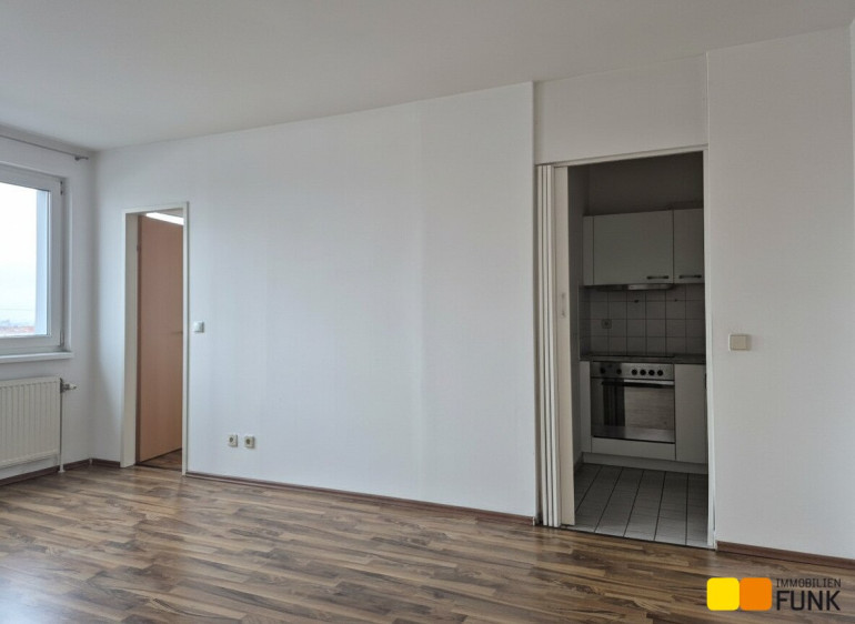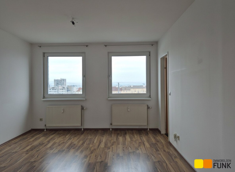 Die gepflegte 1,5-Zimmerwohnung befindet sich im 8. Liftstock eines Wohnhauses und hat eine Nutzfläche von ca. 42 m². Sie betreten die Wohnung über einen kompakten Vorraum mit ausreichend Platz für eine Garderobe. Linker Hand finden Sie einen ca. 2,8 m² großen Abstellraum. Das rund 5 m² große Badezimmer ist mit Badewanne, Waschtisch, WC sowie einem Waschmaschinenanschluss ausgestattet. Geradeaus gelangen Sie in den ca. 19 m² großen Wohnraum, von dem aus Sie Zugang zur ca. 3 m² großen Küchennische sowie zu einem separaten Schlafzimmer mit ca. 7 m² haben. Von der Wohnung aus genießen Sie einen herrlichen Rundblick bis zum Wienerwald. Die aktuelle monatliche Vorschreibung für Heizung und Warmwasser beträgt € 107,58 inkl. USt.