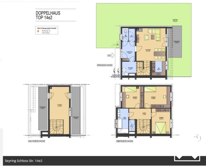 In Seyring in der niederösterreichischen Gemeinde Gerasdorf entsteht eine neue, familienfreundliche Doppelhausanlage. Jedes der 12 Eigentum Reihenhäuser mit jeweils 2 PKW-Stellplätzen hat eine Wohnfläche um 140 m2 und eine Gartenfläche bis zu 170 m2. Die Wohnfläche der Häuser variiert je nach Konfiguration zwischen 136 m2 und 143 m2 Wohnfläche.