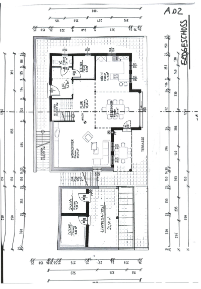 Sichtdach bis zum First. Ein gemauerter Kaminofen von Haas & Sohn sorgt für behagliche Atmosphäre. Die moderne Einbauküche mit Geräten von Beko ist funktional und stilvoll ausgestattet. Von hier aus gelangen Sie auf die Terrasse aus Bangkirai-Holz mit elektrisch verschließbarem, überdachtem Bereich.