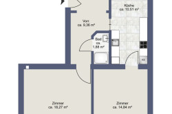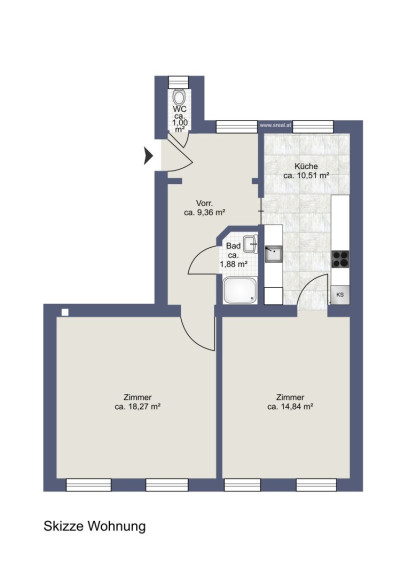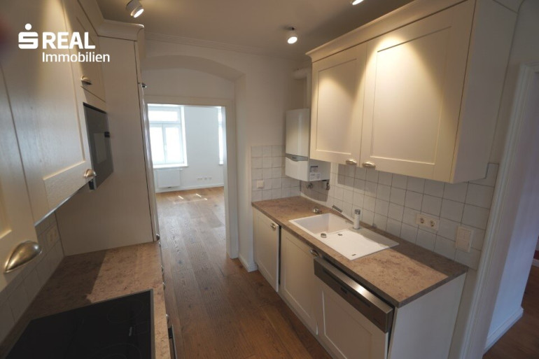 Geboten werden Vorraum, Toilette, Bad mit Dusche, 2 Zimmer und Küche (neuwertig und mit Miele Geräten ausgestattet). Ein netter Innenhof steht zur Nutzung zur Verfügung.