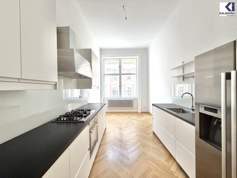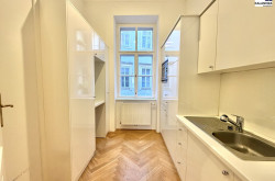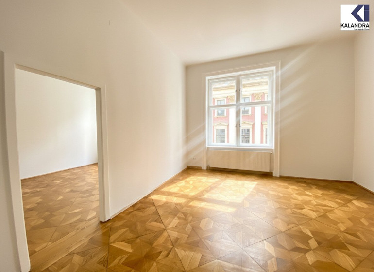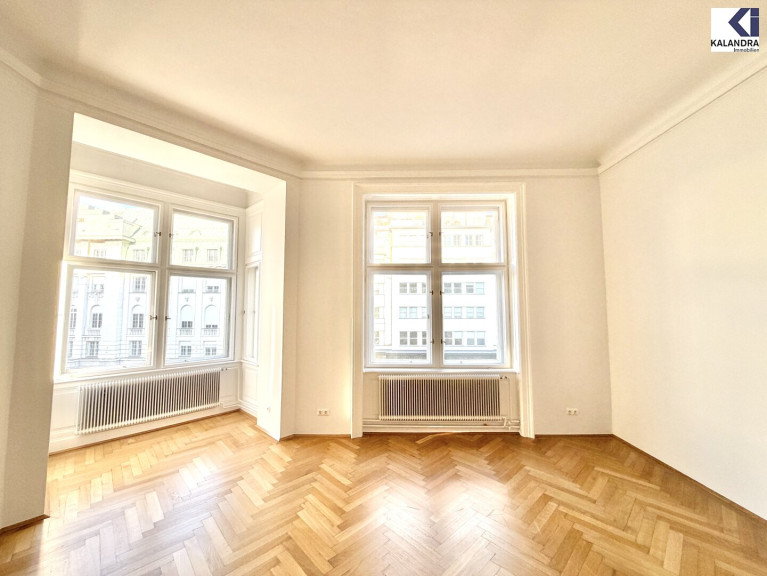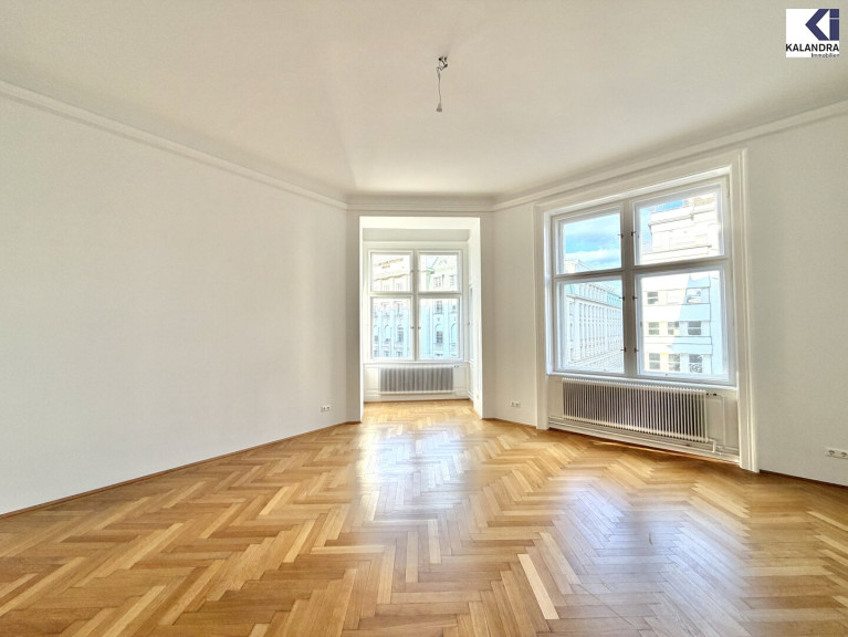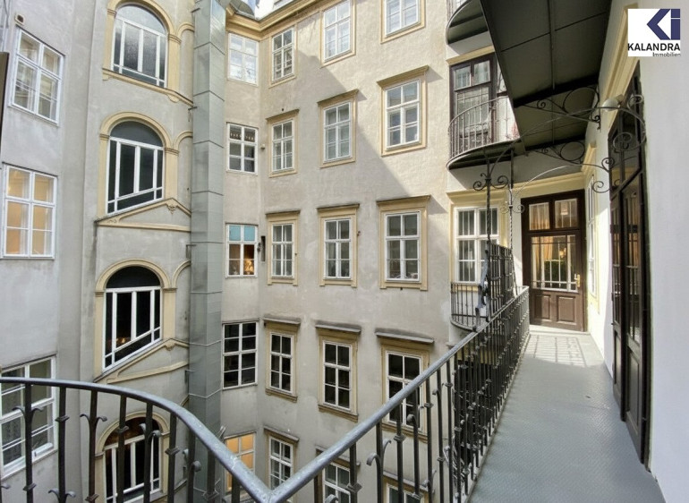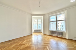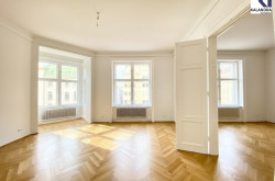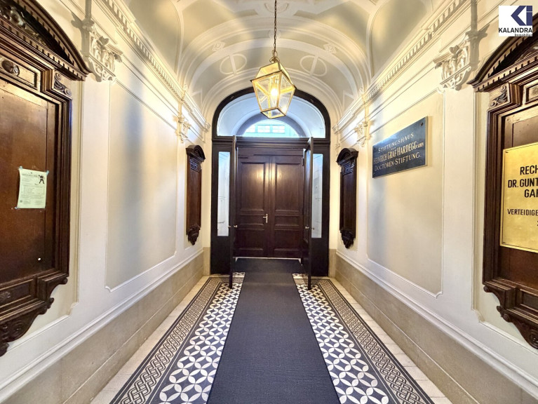 Diese klassische Altbauwohnung im 2.Liftstock eines repräsentativen Gebäudes nahe Schottentor ist eine Zusammenlegeung aus ehemals 2 Wohnungen, verfügt daher über 2 Eingänge und 2 Küchen und bietet folgende