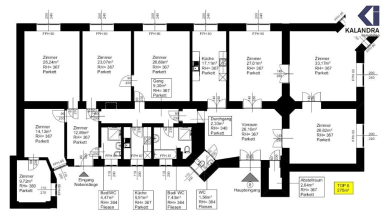 - 2 weitere Zimmer in einer Flucht (ca. 21m² & 26m²) über den 2.Vorraum in