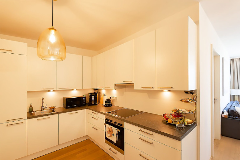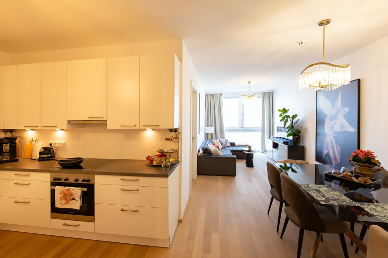 Wohnzimmer mit offener Küche, Schlafzimmer, Vorzimmer,