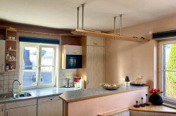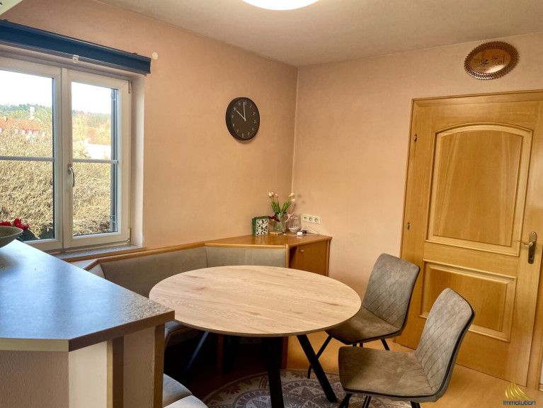 Die Küche verfügt über eine gemütliche Sitzecke, während das großzügige, separat gelegene Esszimmer zusätzlichen Raum bietet. Das Wohnzimmer liegt ebenfalls abgetrennt und bietet einen ruhigen Rückzugsort. Eine Waschküche, ein ca. 14 m² großer Wintergarten sowie ein ca. 40 m² großer Keller erweitern den Wohnkomfort.