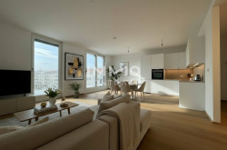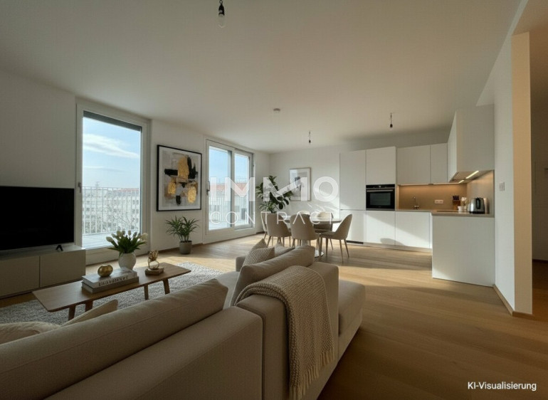 Diese exklusive Dachgeschosswohnung mit rund 105 m² Wohnfläche überzeugt durch ein lichtdurchflutetes Raumkonzept, moderne Eleganz und erstklassigen Wohnkomfort. Der großzügige, knapp 32 m² große Wohn-Koch-Bereich mit bodentiefen Fensterflächen bildet das Herzstück der Wohnung und vermittelt ein offenes, sonniges Wohngefühl. Die angrenzende, ca. 14 m² große Sonnenterrasse lädt zu entspannten Stunden im Freien ein. Drei ruhig gelegene Zimmer, darunter ein über 20 m² großer Masterbedroom mit en-suite-Bad, bieten viel Raum für Rückzug und Privatsphäre. Zwei stilvolle Bäder – eines mit Dusche, eines mit Badewanne – ein separates WC sowie ein praktischer Abstellraum ergänzen das durchdachte Raumangebot. Hochwertiger Eichenparkett, Klimaanlage und Außenbeschattung unterstreichen den exklusiven Charakter dieser Dachgeschosswohnung – ein Zuhause für anspruchsvolles, modernes Wohnen. Dank der attraktiven Lage und des durchdachten Grundrisses eignet sich diese Einheit auch hervorragend als wertstabile Investition für Anleger mit Vermietungsabsicht.
